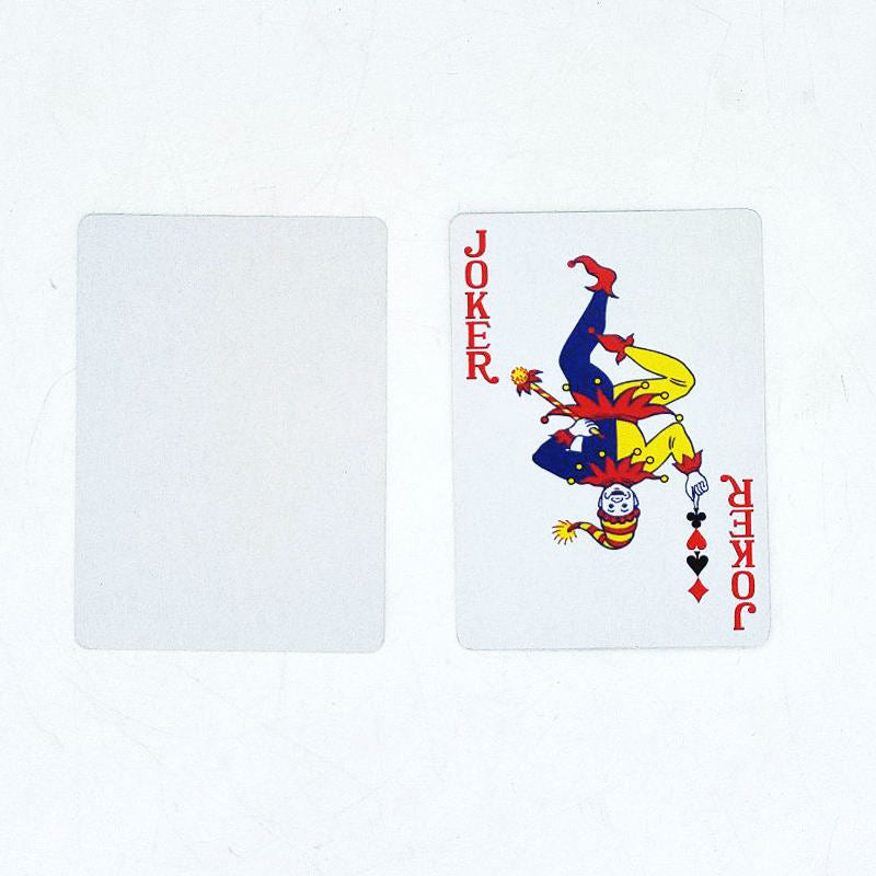 Designed for custom printing. Each card is made of a high-quality, smooth, heat-resistant material with a bright white finish for vivid, full-color prints. The blank card faces provide ample space for personal designs, logos, or photos, while the standard card backs can also be customized. The deck includes all 52 cards plus two jokers, packaged in a sturdy, plain box that’s also customizable. Ideal for creating unique, personalized card sets for gifts, events, or promotional items.